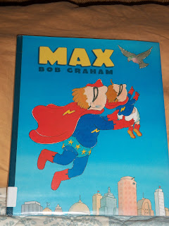 First order of business was to sign in...tell us what super hero they were and what their super power was. Next everyone got to make a mask....blue with two stars and a lightning bolt. Glitter paint for extra pizzazz...that was a big hit. (I am" modeling" (haha) the one my friend Ellie made.) I also had my very own cape (ordered from ETSY) with a big A...super librarian Anne!